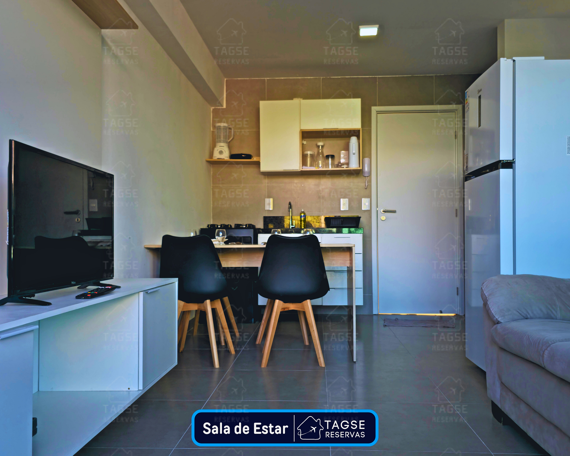 Localizado no 1º andar e acessível por elevador, o apartamento também se destaca por sua decoração minimalista, moderna e aconchegante. A sala é equipada com uma mesa de jantar para quatro pessoas, sofá confortável, TV Smart e Wi-Fi. A cozinha completa dispõe de todos os utensílios e equipamentos necessários para uma estadia sem preocupações.